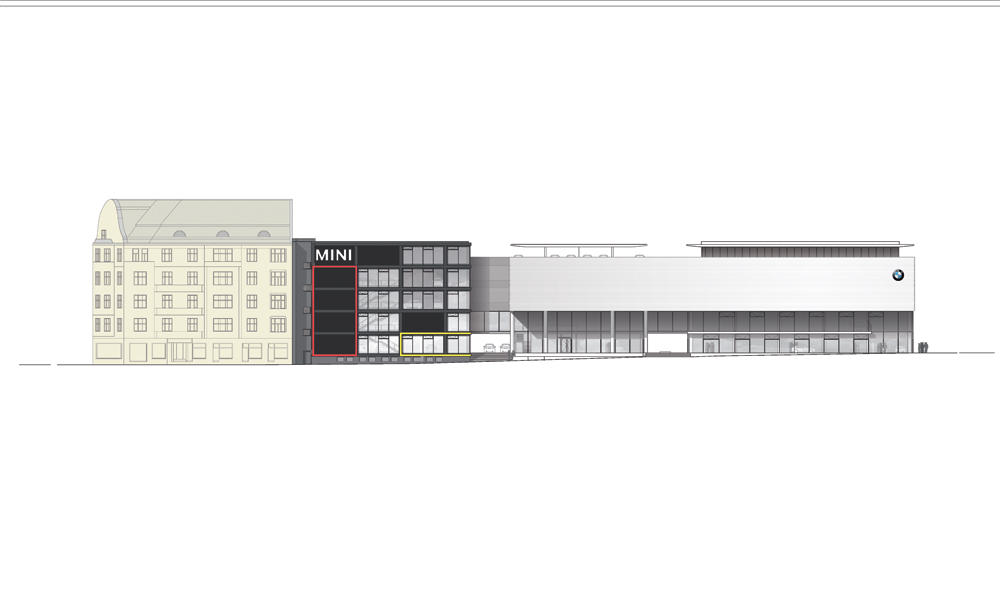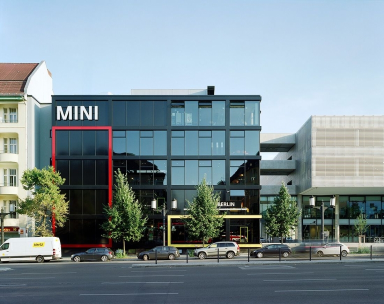 The complex consists of three different structures: BMW is formed as an interpretation of the Berlin block with a bright louvre facade, MINI as a black cube on the Kaiserdamm, the motorcycle center as a solitaire on the south side to the motorway and the exhibition center. A complex room program consisting of exhibition, service, office and car park areas is being composed into a complete form which gives the group a distinctive appearance.