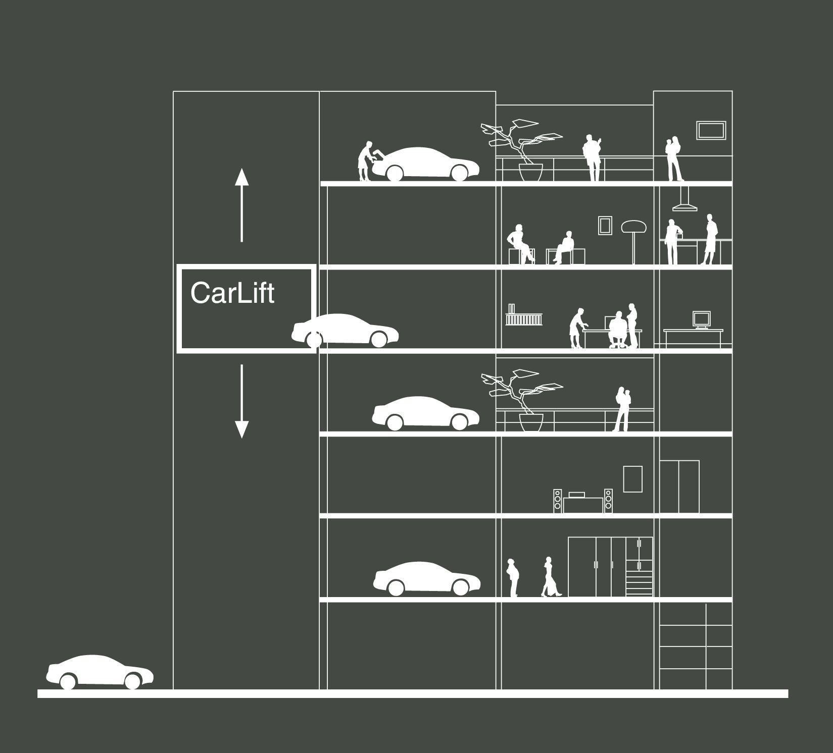 New construction of a residential building with integrated car lift. The project near the Paul-Linke-Ufer is the first CarLoft project ever.