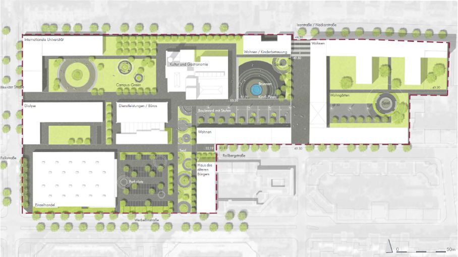 The interplay of the different, existing and newly planned buildings on the Kindl Areal is intended to produce a balanced architectural ensemble. The different streets and open spaces form the spatial and traffic framework for public and private buildings with different uses. The creation of new road connections over the plan area links it with the adjacent district, opens the area for the general public and invites you to use the squares. The contract includes the accompaniment B-Plan procedure, control of new construction and reconstruction measures.