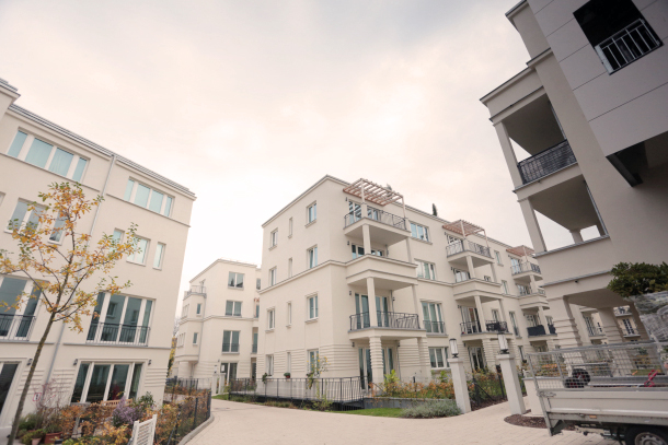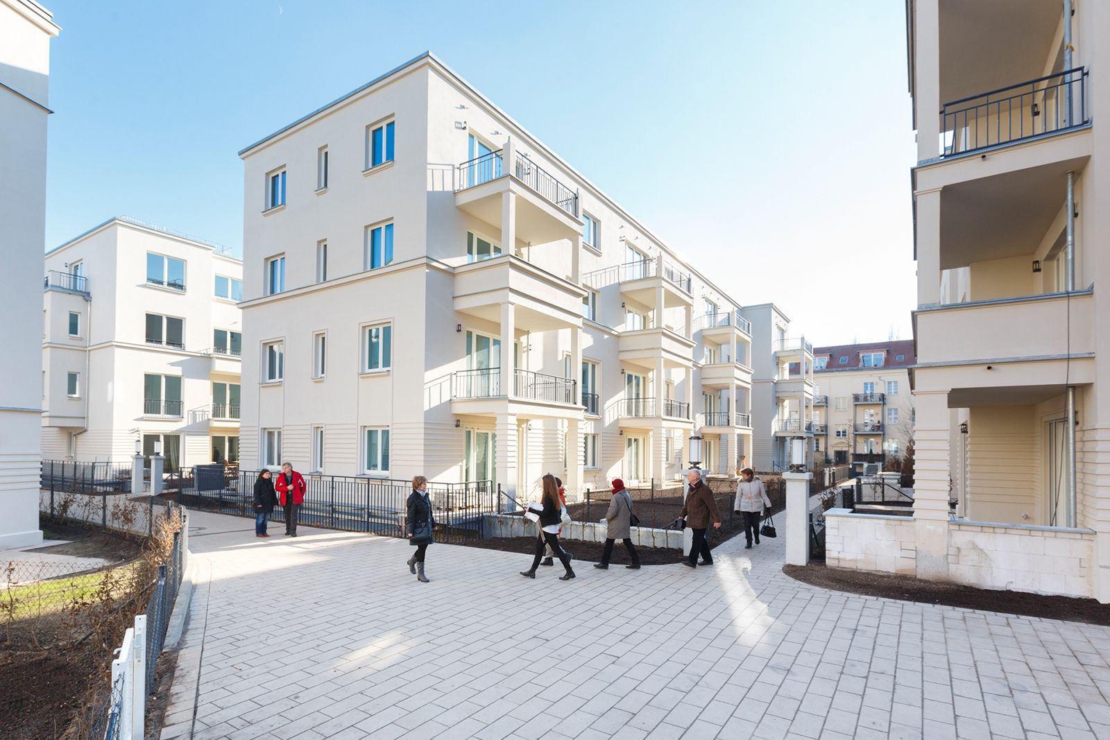 The bright facades with lattice windows as well as the classically elegant architecture are intended to create a blend of tradition and modernity and convey impressions of different eras.