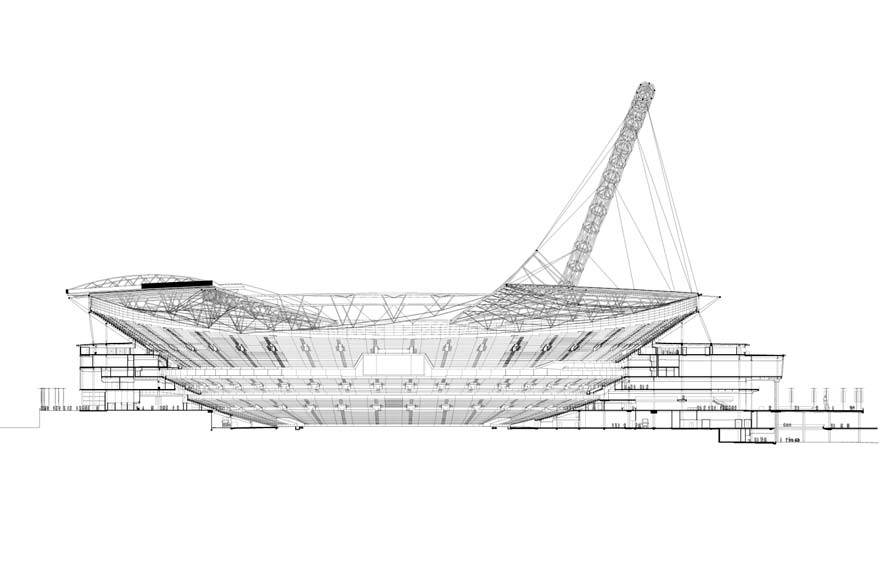 A key feature of the new stadium is the partially extendable and retractable roof. In the fully open state, it is possible to reach the sunlight over the entire field. This is an essential element in maintaining the world standard for the quality of the lawn. In bad weather, the roof can be closed within 1 hour to provide protection for all 90,000 seats