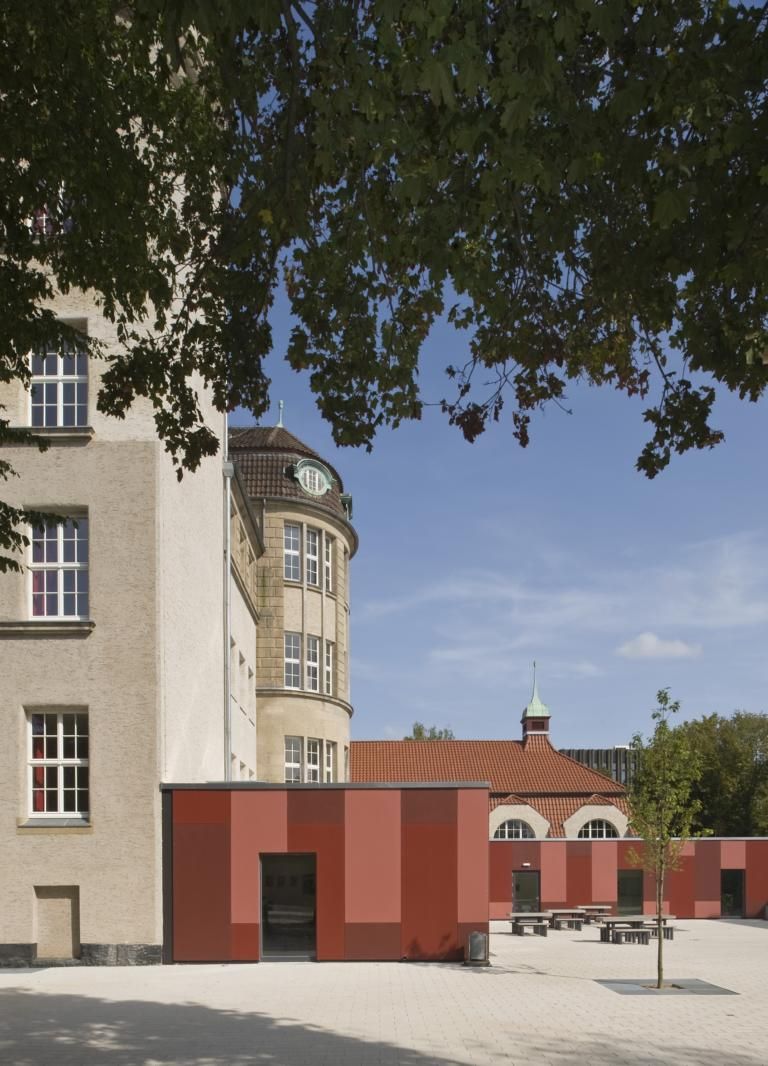 Sanierung der denkmalgeschützten Bismarckschule und Neubau eines Passiv-Haus-Anbaus mit 10 Unterrichtsräumen und Ganztagesbereich, inklusive Speisesaal, Cafeteria, Küche und Spiel- und Spaß-Bereich.