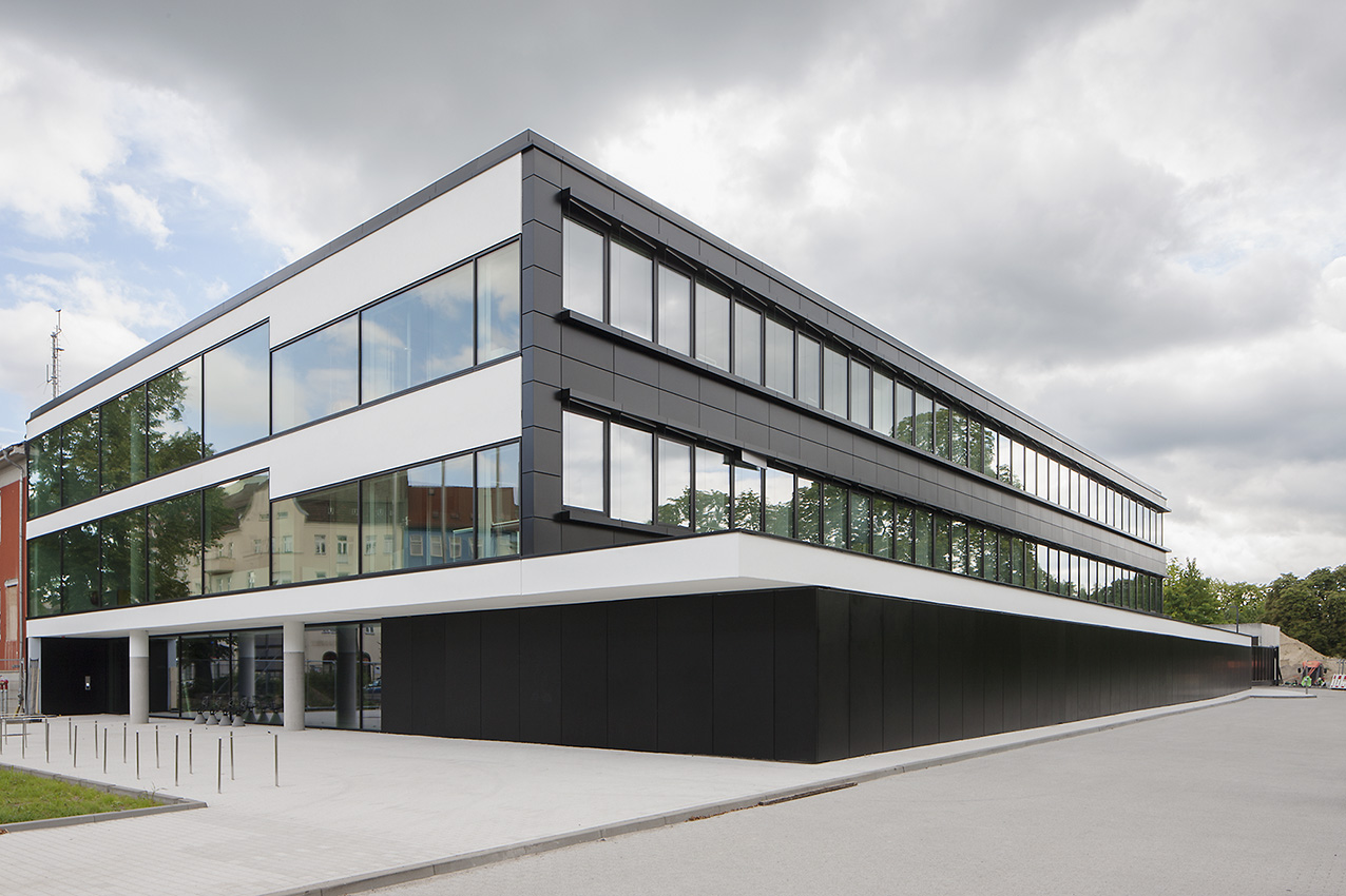 Realisierung verschiedener, moderner Bürokonzepte, bis hin zu „non-territorialen Arbeitsplätzen im Passivhausstandard. Hohe Funktionsvielfalt mit Bürgerbereich, Wache, Gewahrsam, Kriminalpolizei, Prävention, Stabsstelle.